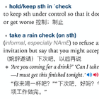 keep/hold sth in check: to keep sth under control so that it does not spread or get worse
