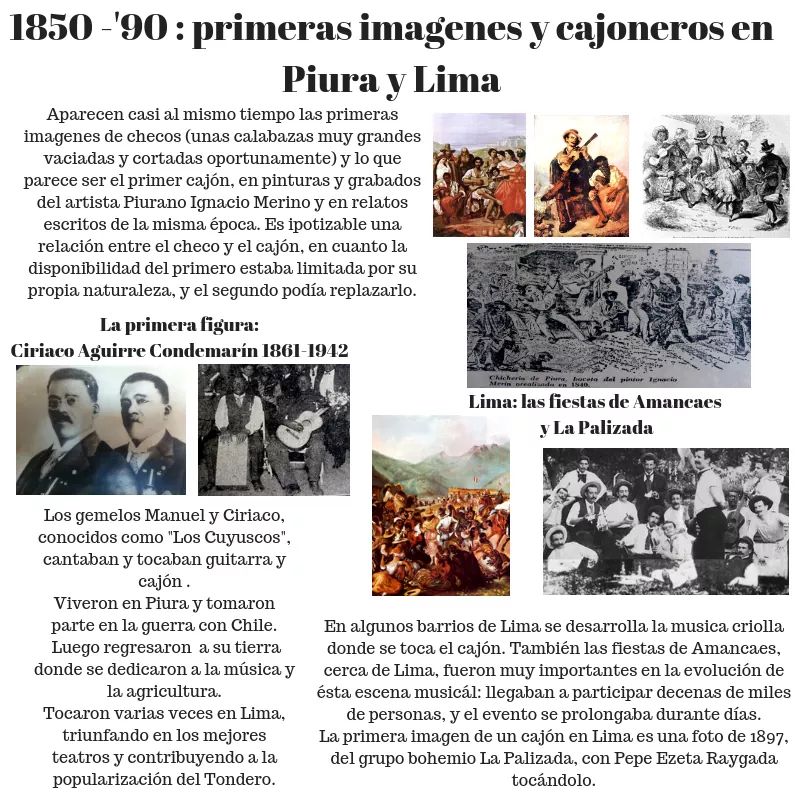 随着非洲秘鲁音乐文化的不断地深入发展,新的舞蹈种类,诸如:萨玛古维卡舞、庆典舞、兰多舞等应运而生,而箱鼓成为这些舞蹈的标配打击乐器。至黑人奴隶制废除,箱鼓艺术家们不断的探索箱鼓改良的各种可能性,而最早的尝试就是把箱鼓的打击面板用脚部抵住,从而改变打击面板的弯曲度,达到改变音色的目的。