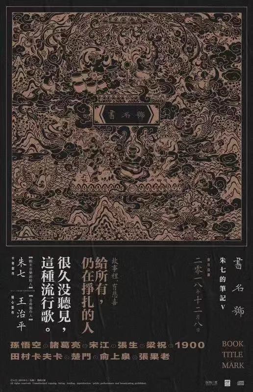 《书名号》是一张特别“滚石”的专辑。不论从企划角度,还是概念铺陈,以及王治平的制作、李琪的弦乐甚至朱七本人的演唱,《书名号》无不让我们这批从九十年代走过来的歌迷联想起滚石,联想起“九大天王十二出好戏”“杨佩佩金装大戏”“乱世佳人新好男人”等等的滚石合辑,那几乎是一脉的传承。尤其,朱七创建的虾米音乐,从成立初期的审美取向就被我们认做是滚石翻模,后来拿下滚石在内地的独家版权,更是让我们几乎把虾米等同于滚石,至今。我们无疑都是“喝滚石奶水长大”的,虽然想来滚石的“知性”“人文”和“侠风”多半是商业套路,却还是甘之如饴,甚至于在《书名号》里探求朱七隐藏的关于滚石的蛛丝马迹,比如《东风》是在致敬罗大佑吗?比如《好汉》是在回望《真心英雄》吗?比如文案里毫无意外找到了周华健的《江湖》(所以本文标题我也戏仿了潘越云在滚石的一张专辑)…… 拨开这些浅显的表层,整个《书名号》的核心,其实都在照应滚石数十年的人文底蕴,也都在呼应滚石确立的华语流行乐坛的“企划先行”理念。所以想问朱七,“滚石”二字的血脉,是渗透在《书名号》的肌理里面了吧?那为什么,《书名号》的实体唱片却最终交给福茂唱片公司发行,是否也暗含着某种对今天滚石的复杂情感呢?