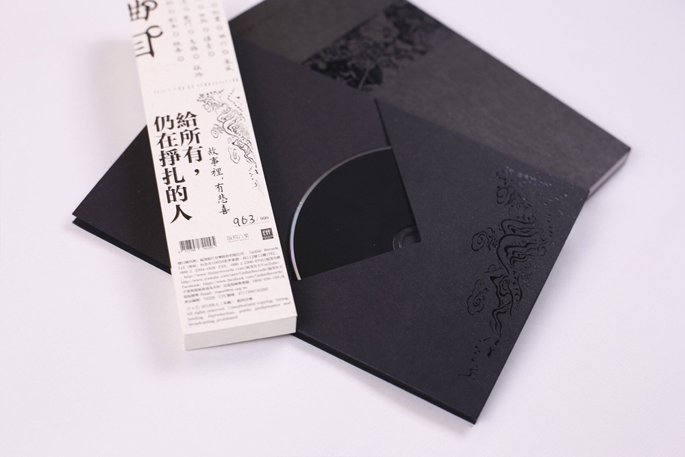 虽然华语流行的实体CD最穷极装帧包装之能事,比如外盒大如旅行箱或披萨盒,或者塞满了周边、香水小样和优惠券,但其实这些花里胡哨、徒增成本又令人收藏困难的奇形怪状根本和音乐本身毫无关系,真实是增生的赘肉和毒瘤。打开《书名号》的实体CD,虽然也没有“复古”到使用标准CD盒(当然现在使用标准CD盒来包装CD倒反而变成另一种“刻奇”和“政治不正确”了),但能感受到其上的每一个装帧思维都紧紧扣合了专辑本身的概念:做成左开直排繁体字仿线装的书籍自然是最贴合这张专辑概念的选择,而书的封面折页展开后另有洞天的工笔画,既是专辑真正的封面,又以传统佛教意味诠释“书中人生”的核心主题。CD的放置则做成了仿奏折的样式,大约有从“天道”隐喻“人道”的心思在里面——如果是在大公司体制下,想来应该不会舍得花钱在包装上玩这么深的梗了吧?《书名号》的实体CD限量999张,本来已算开机印刷的下限,然而那“奏折”还分五种不同颜色和设计,这种“不同封面”的包装理念是世纪初的惯用,近些年因为成本的考虑已经受冷落。