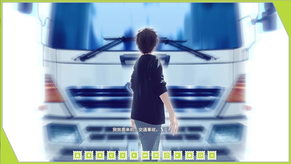 界面以灰+绿为主,非常清新的配色,功能该有的都有,music界面播放时也有暂停和前后调进,另外特殊演出时文本框也会消失自动变成单行文字,看起来也不错。还有能直接在功能键里把声音关了真的方便。