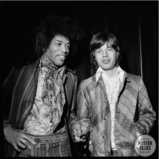 1967年3月伦敦Pops TV Studios,Byrne为刚刚从美国去英国发展的吉他手兼歌手Jimi Hendrix拍下了这张照片,而站在他身边当人是已经红遍英伦的滚石乐队主唱Mick Jagger。当时Jimi在英国发行了一张单曲唱片《Hey Joe》,正在参加电视秀宣传活动,而恰巧滚石也在。Byrne在两人碰面之际邀请他们一起合影。只拍了一张照片,两个伟大的歌手就这样被定格在方寸间。