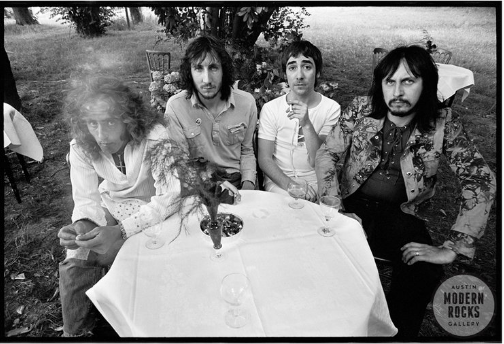照片中的人依次是:主唱Roger Daltrey,吉他手Pete Townshend,鼓手Keith Moon和贝斯手John Entwhistle,他们四个英国人组成了红极一时的摇滚乐队The Who。照片拍摄于1971年夏天,地点是在Keith Moon的宅邸“Tara”中。当时,乐队正在庆祝他们新专辑《Who’s Next》当发行。