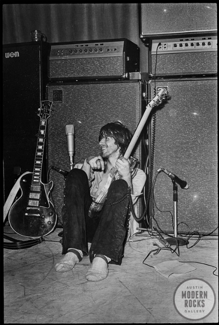 1971年3月26日伦敦大篷车俱乐部,当乐队成员调音的时候,Byrne为滚石乐队的吉他手Keith Richards拍下了这张照片。据Byrne自己回忆说:“那绝对是个经典瞬间。大家都在校音,Mick Jagger看看Keith,又转头看看Mick Taylor(Brian Jones死后乐队的主音吉他手),然后他俩就大笑起来。当乐队开始演奏时,Keith走了神,好像完全进入到另一个世界。过了一会儿,他走到功放器边上,然后突然摔倒。我吓了一跳,但Keith却还在笑。Jagger与Wyman(乐队贝斯手)走过去与Keith说了几句并拉他起来。我还以为这是最后一次看见Keith呢,可他休整后恢复常态,完成了整场演出。”