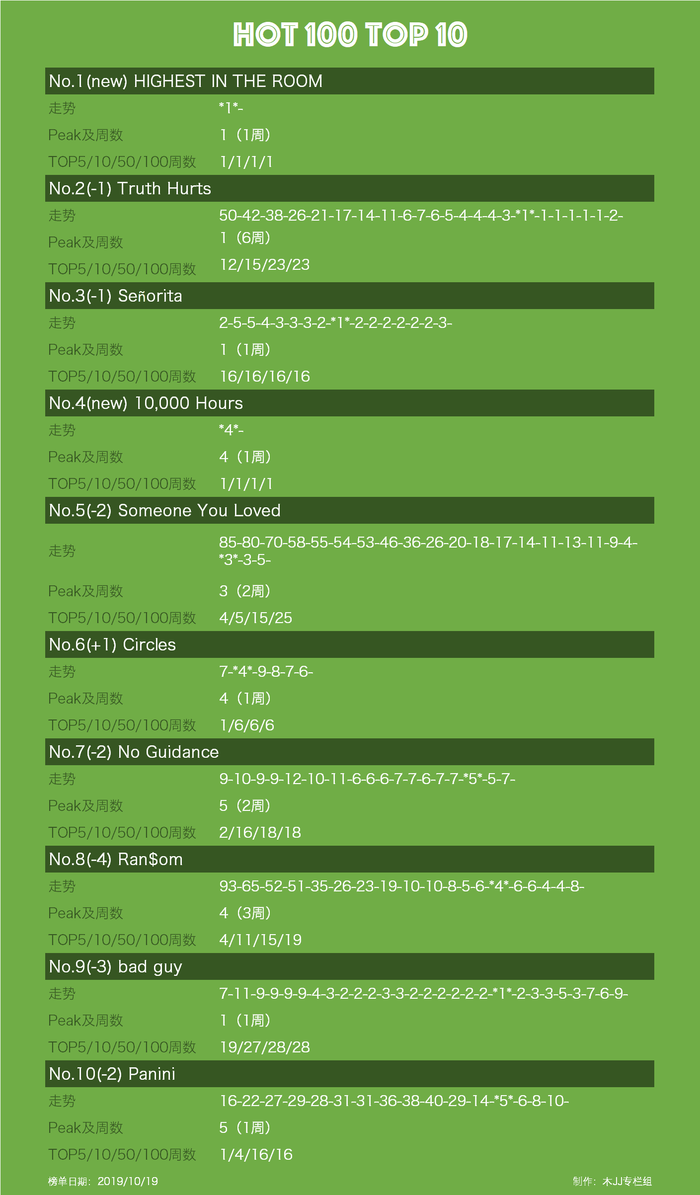 最后一"炮"由于瞄准偏差,与前十失之交臂,空降第十一,那便是由小果汁(Juice WRLD)和NBA Boy(Youngboy Never Broke Again)合作的《Bandit》。Bandit成为小果汁在Hot 100的第二好成绩,NBA Boy的最好成绩单曲。