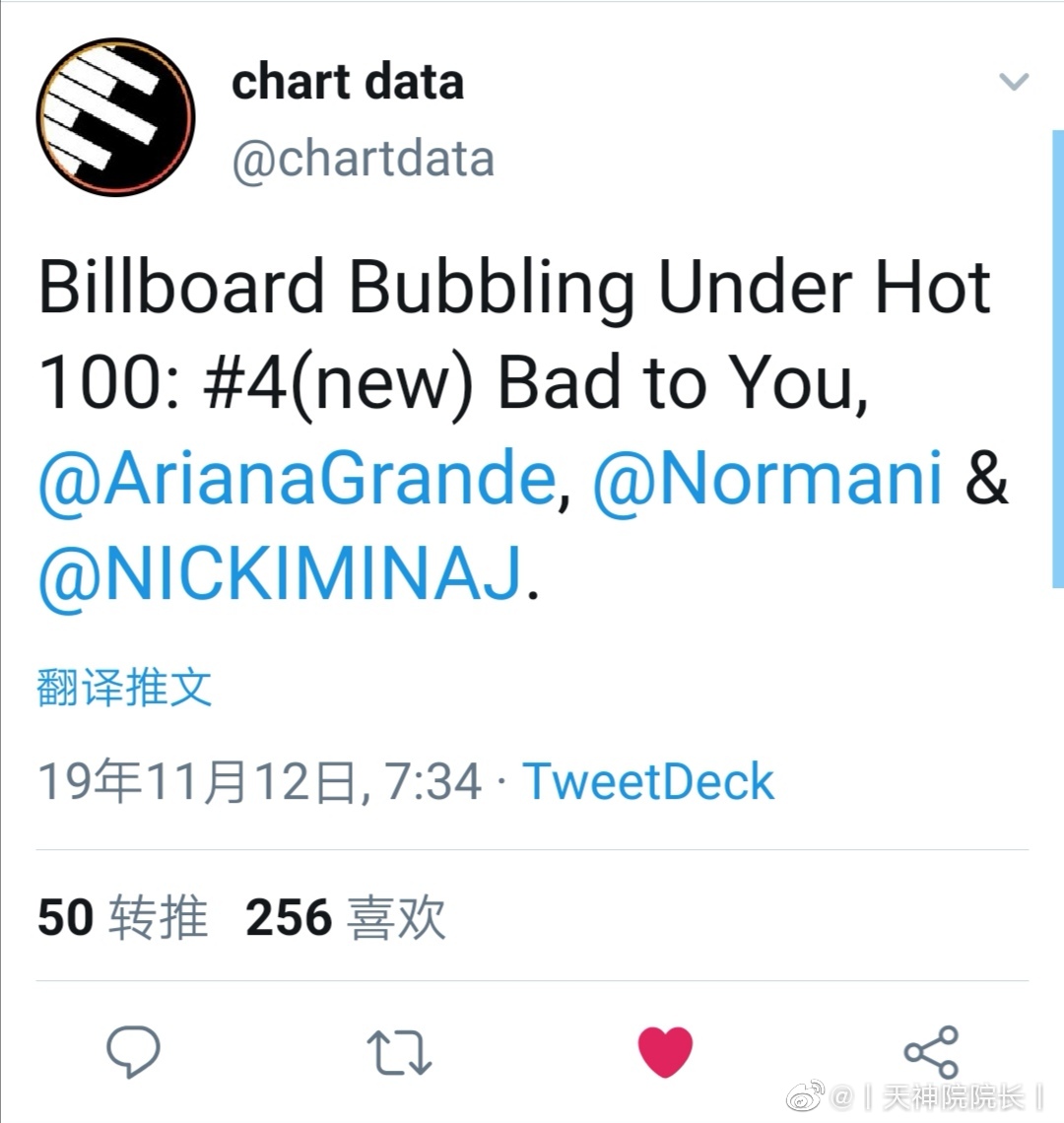 注:Billboard Bubbling Under Hot 100是官网为没有进过单曲榜的歌曲推出的榜单,每周推出TOP25,一定程度上可以理解为单曲榜第101名~第125名。