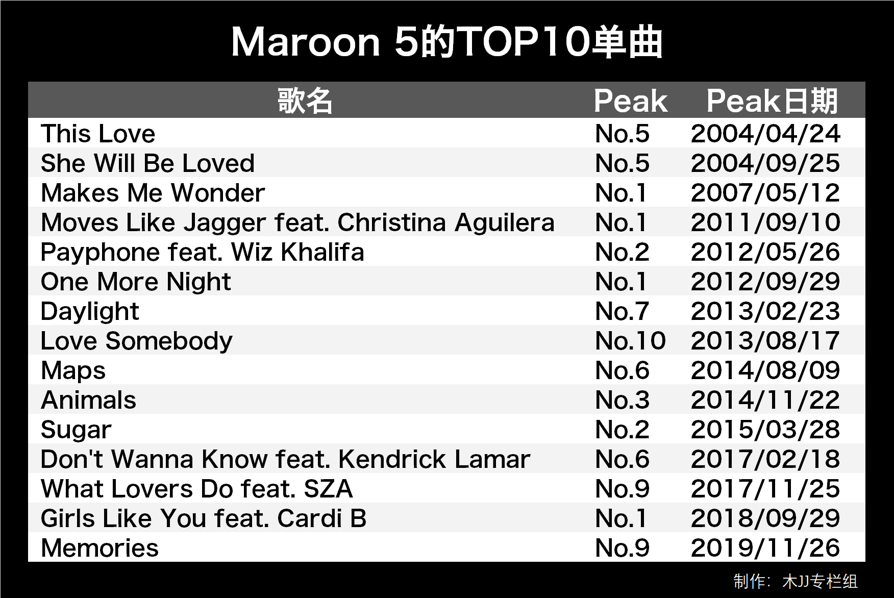 15首 - Maroon 5