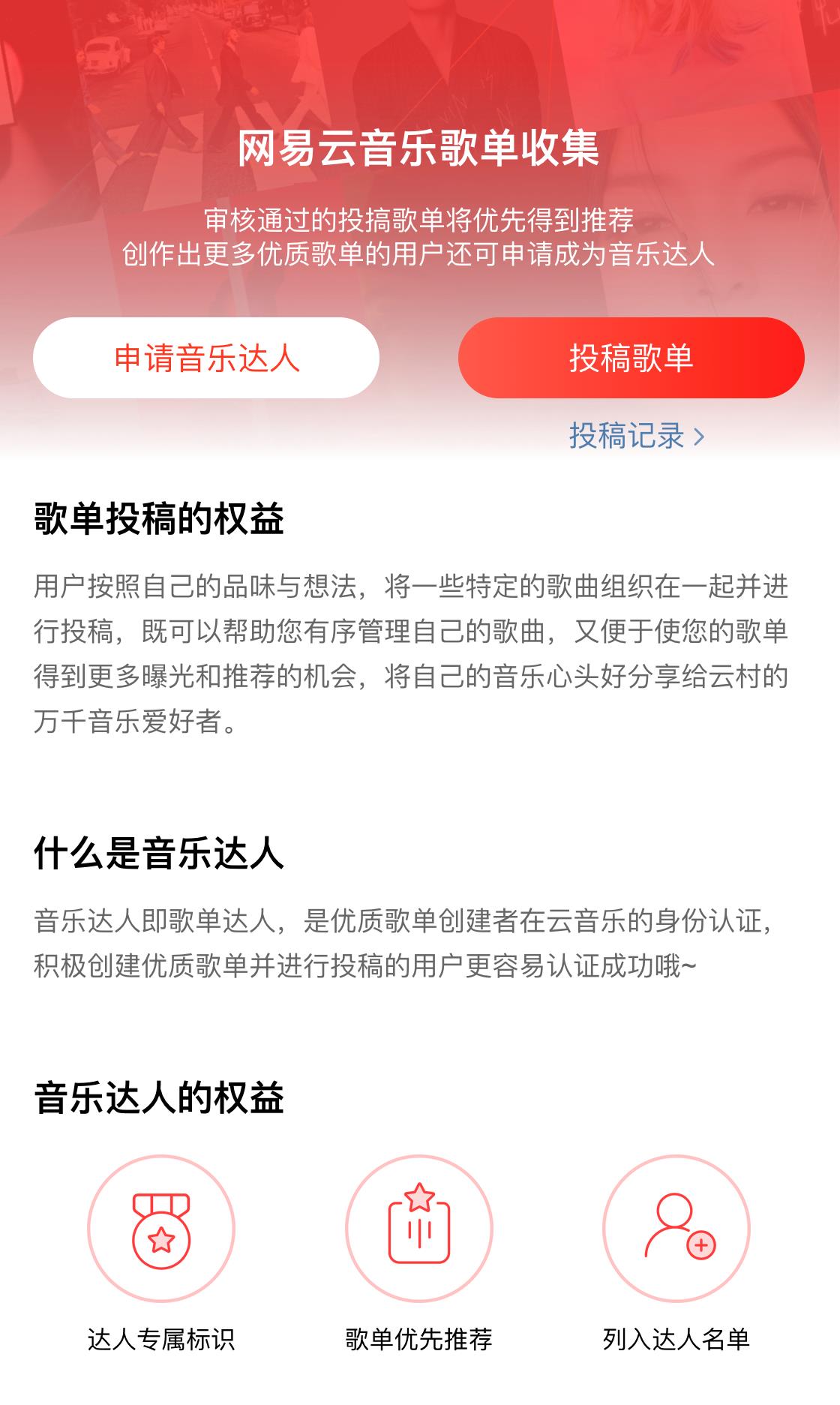 音乐达人是优质歌单创建者在云音乐的身份认证。