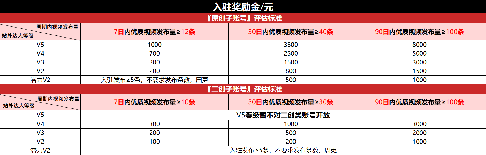 2.  账号资质:机构独家签约/自营1个视频创作者,且内容垂类符合平台要求;