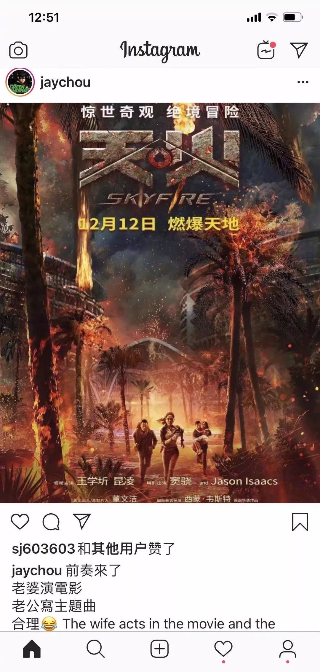 周杰伦还特意在ins上po了照片做宣传。